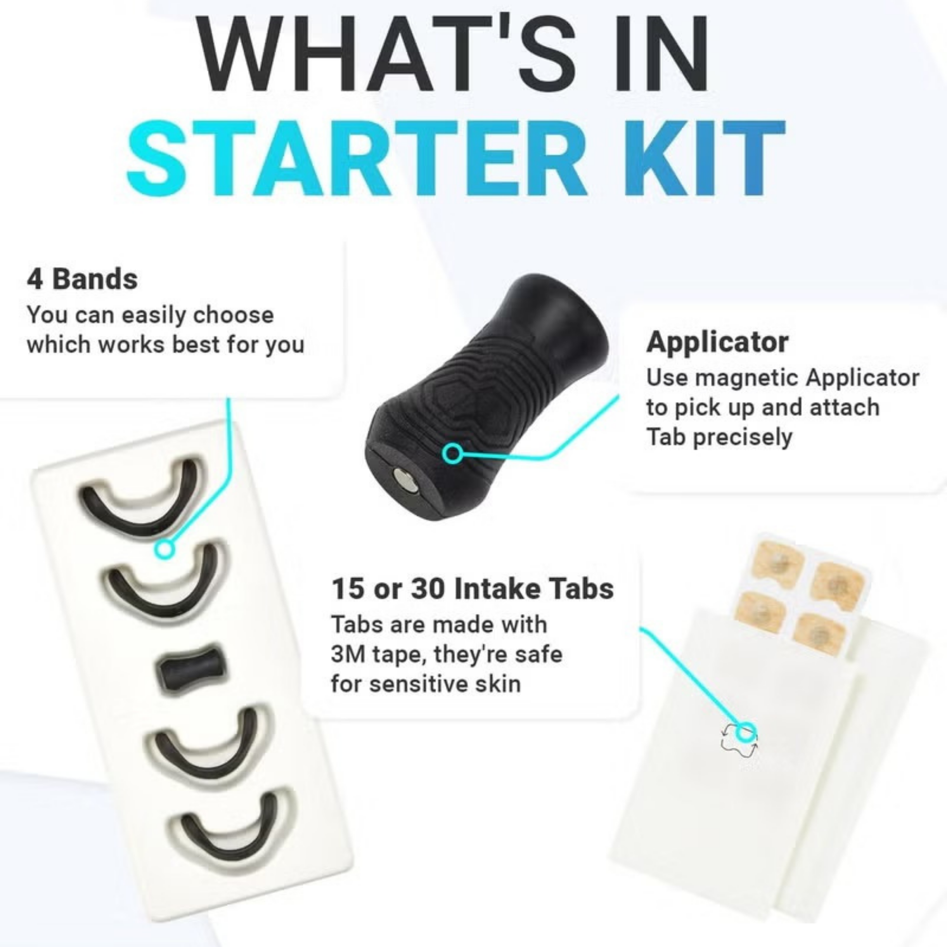- EASY TO USE - The snoring aid Starter Kits come with all the essentials to start using Intake Breathing. It comprises four reusable Intake Relief Bands in various sizes to help you find the perfect fit,30 pairs of nose breathing strips (Tabs) for single use, and a Magnetic Applicator to apply the tabs quickly.