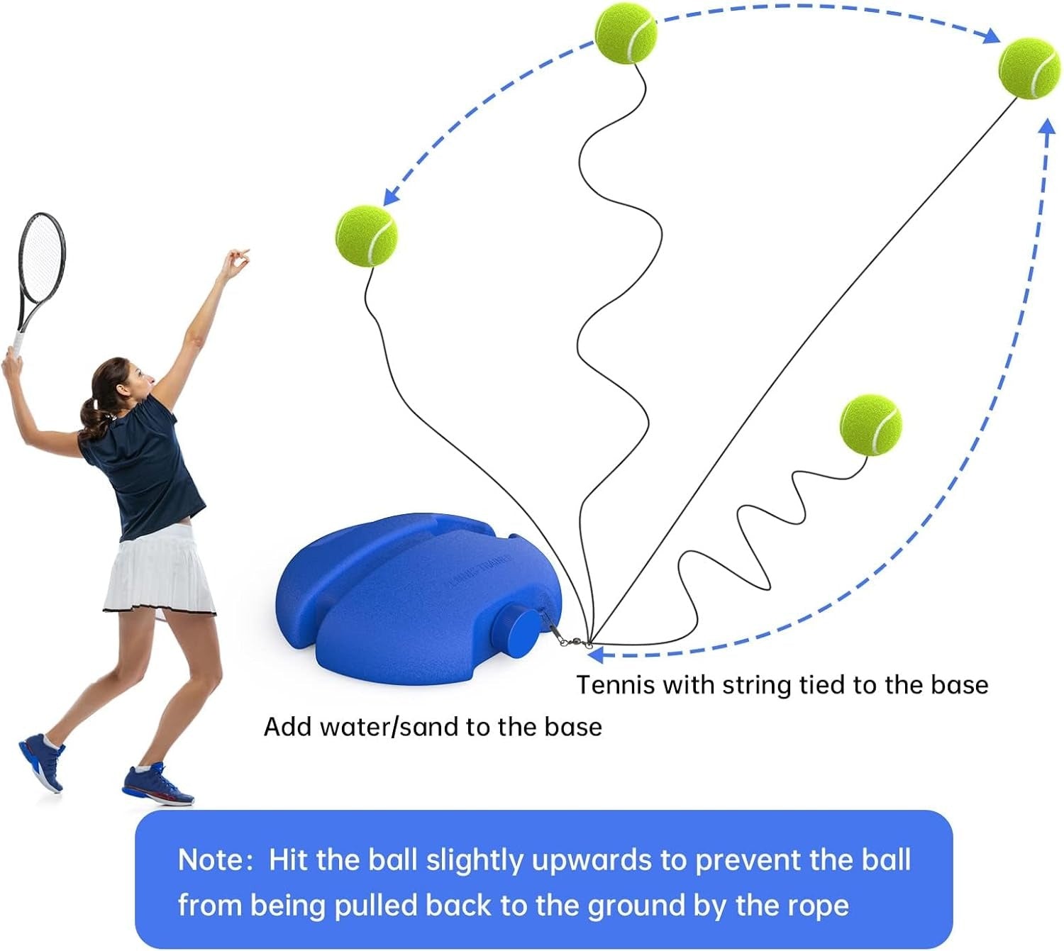 [HIGH-QUALITY MATERIALS]Tennis trainer rebound ball kit is made of durable and high quality high-density PE plastic, with 1 elastic ropes, 1 tennis trainer rebound balls and 1 Trainer Base. The quality we use is better than others. Enough to withstand intense tennis training and various full blows.