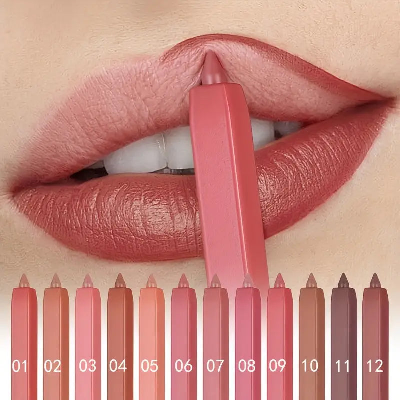Velvet Matte Lip Liner Pencil – 12 Shades of Smooth Precision