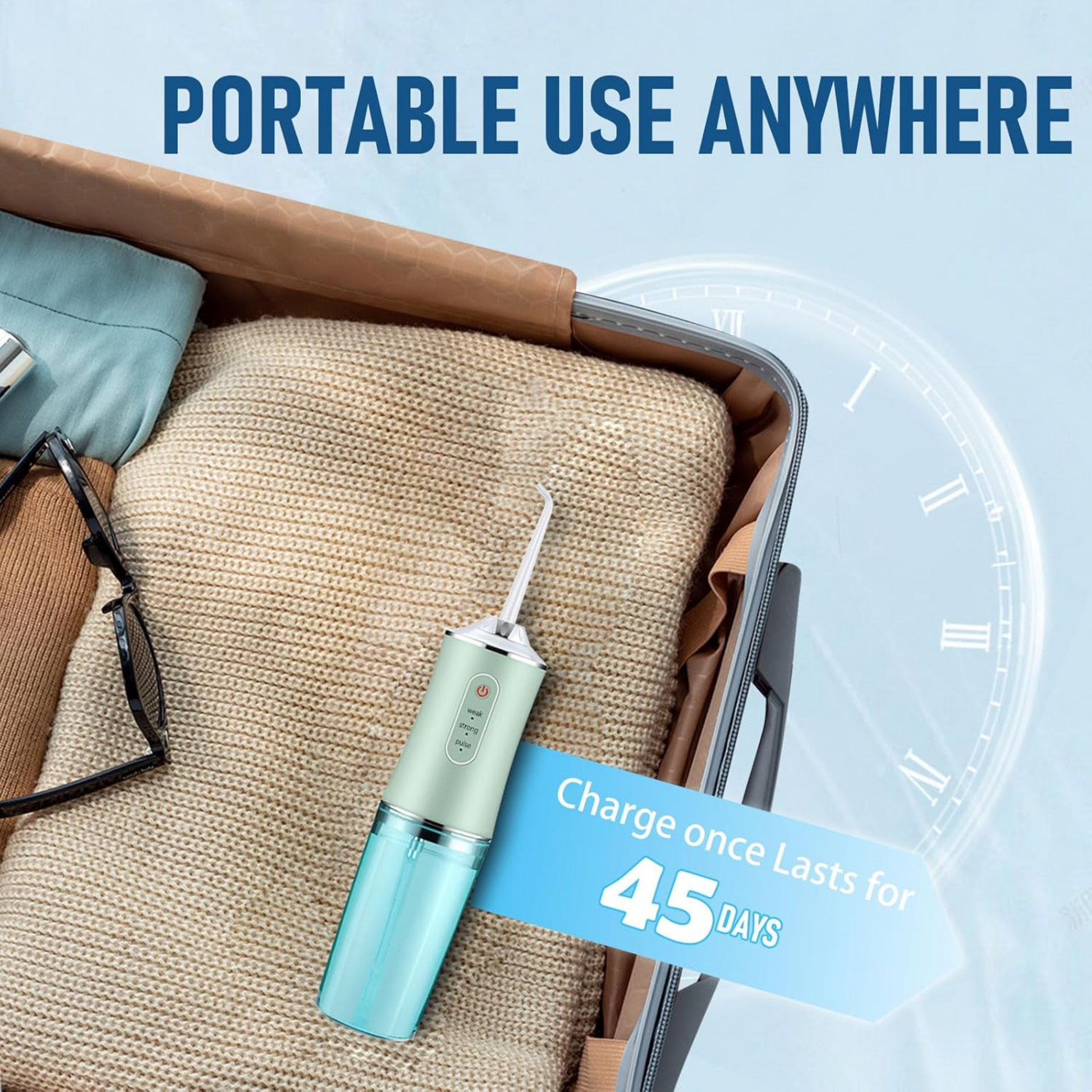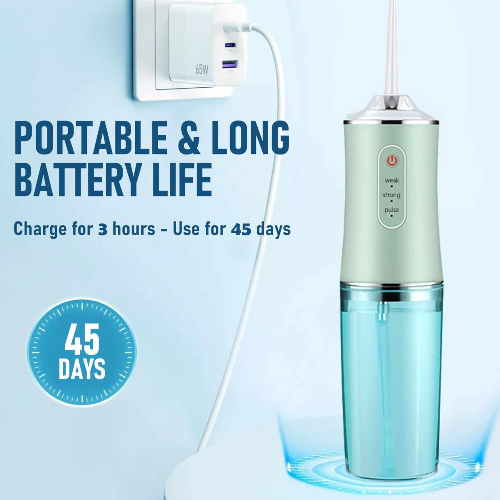 4 hours of a full charge of this oral irrigator can last for about 60 days. No need for frequent charging. It comes with a USB cable (adapter not included), suitable for various charging devices, such as power supplies, computers, and laptops. The cordless water flosser is perfect for carrying around and traveling.